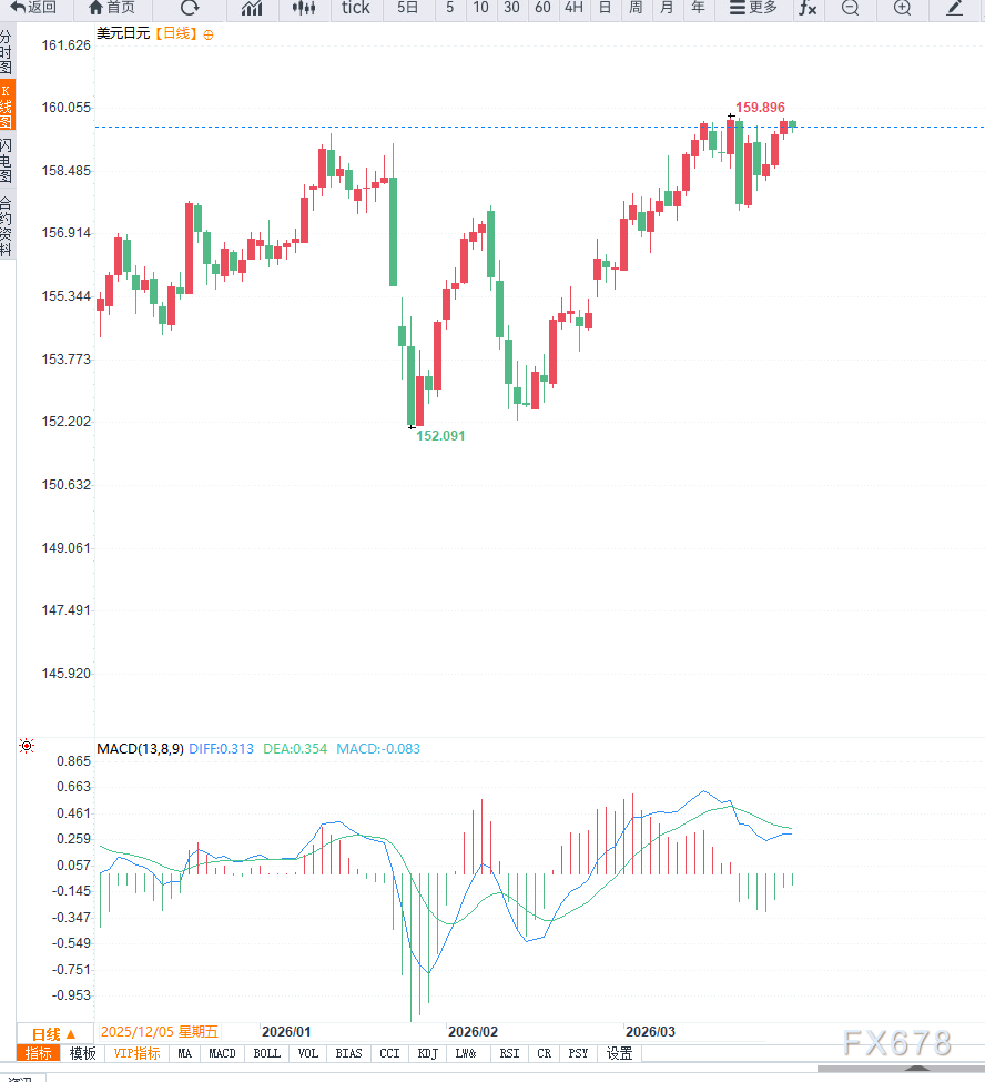 鼓舞汇价回落的主要成分之一是日元靠近纰谬感情关隘160.00。该水平长久被视为日本当局可能收受打扰措施的参考区间,历史上每当汇价接近或碎裂该位置时,市集往往会提前计入潜在计谋风险,从而对好意思元兑日元酿成短期压制。同期,好意思元指数在短线出现小幅回调,也进一步鼓舞汇价回落。