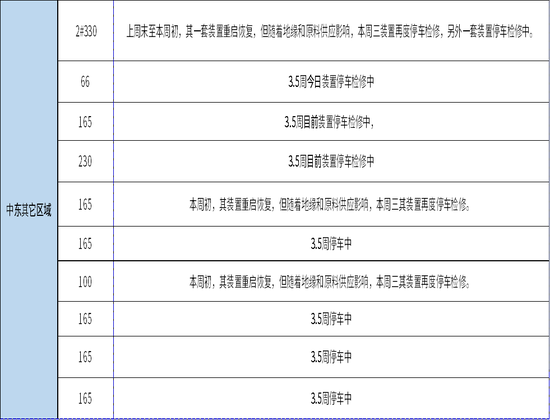26年伊朗dena、sabalana觉得330万吨安装方针投产,其中dena方针一季度试车,sabalan方针四季度投产。受好意思伊突破影响,揣度dena安装投产简略率推后。