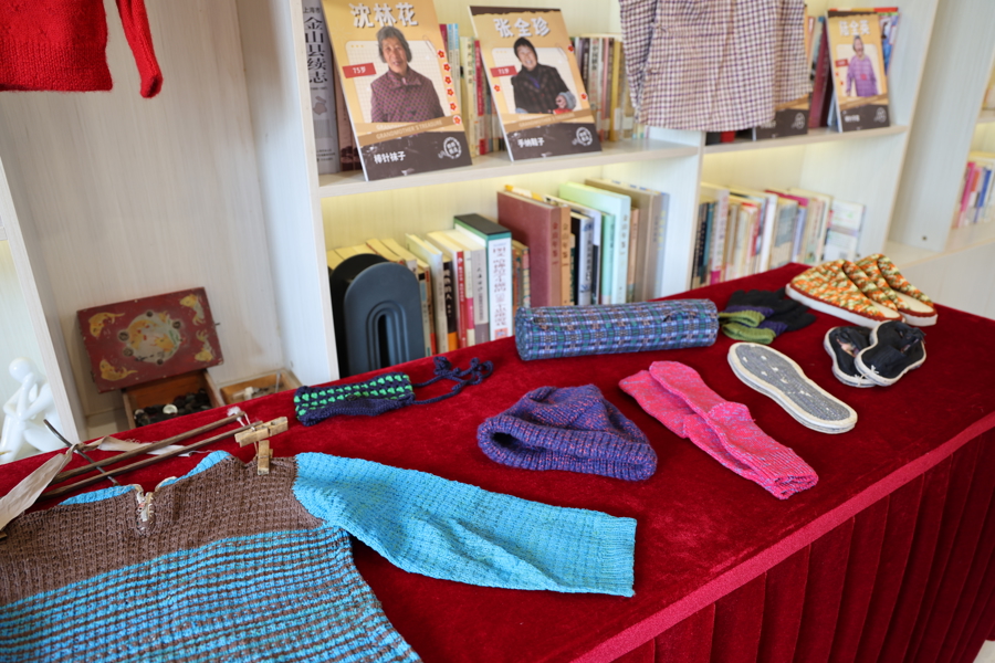 三月的风还带着多少凉意,金山区朱泾镇新泾村党群行为室里却暖意融融。土布衣衫、棒针鞋垫、钩针荷包……每件展品旁,皆放着一张笑容像片,上头写着述品名,也写着创作家的名字:王惠芳、许品宝、张阿妹……