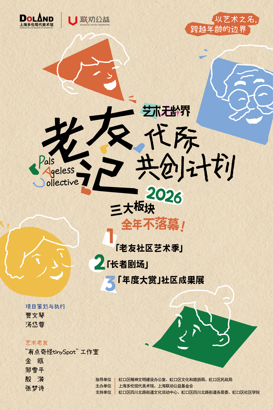 跟着社会老龄化进度加速,如何让不同庚齿段的东谈主群在艺术扩充中再会、相知,已成为城市寰宇文化空间的进犯课题。在此配景下,上海多伦现代好意思术馆与上海联劝公益基金会联袂,认真推出“艺术无龄界”知音记代际共创指标。行径由虹口区精神文静建设办公室、虹口区文化和旅游局、虹口区民政局训诲,2026年3月至2027年1月在虹口区全面张开。