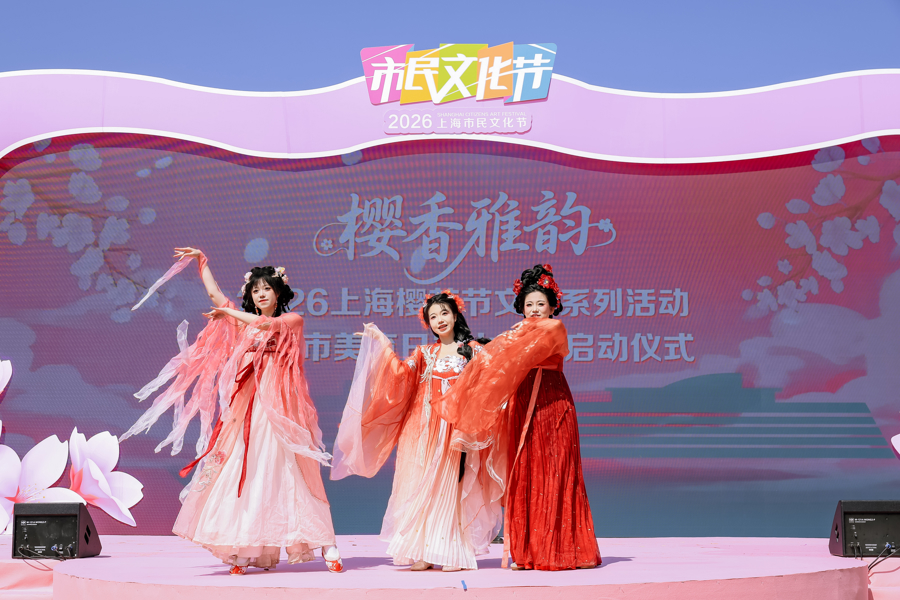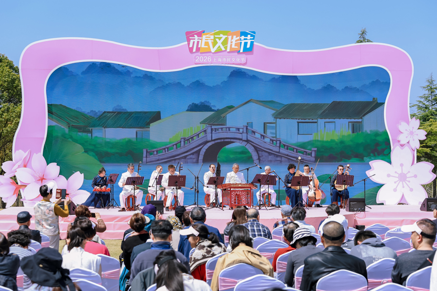 春和景明,樱韵满庭,今天上昼,顾村公园的樱花林间,上海市大师艺术馆清韵江南丝竹乐团奏响的开场曲《弦歌跃马》,为2026年上海市民文化节“城市好意思育日”宝山专场拉开序幕。