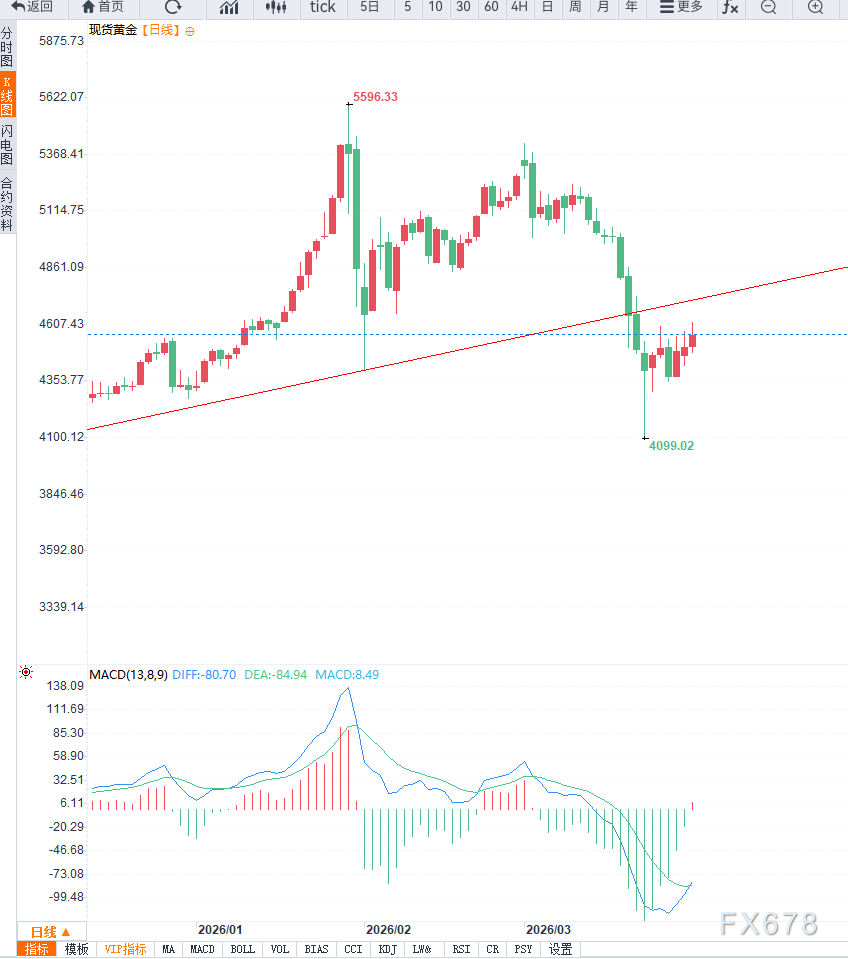 汇通财经APP讯——黄金价钱延续反弹走势,在磋商第三个走动日高涨后,于亚洲时段涉及近一周半高点,迫临4600好意思元关隘。此前金价自4100好意思元近邻低点反弹,主要受好意思元回调与收益率下行相沿,但在要津阻力位近邻彰着承压,披露多头动能仍显不及。