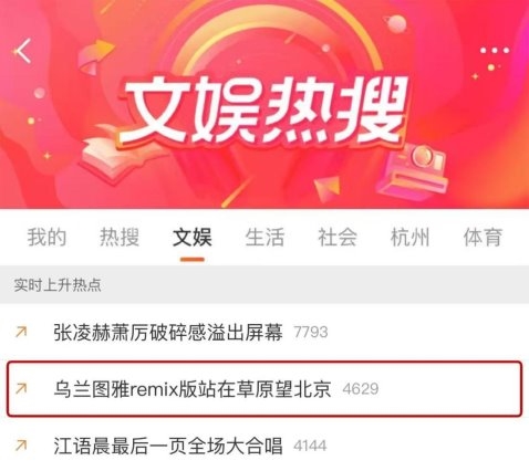 跟着节目播出,“乌兰图雅pk范玮琪”;“乌兰图雅remix版站在草原望北京”赶快冲上热搜.